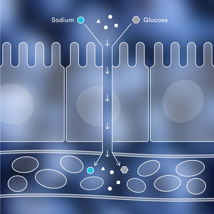 Pairing sodium with a little glucose opens a hydration shortcut, helping fluids and electrolytes pass rapidly from your intestines into your bloodstream via the sodium-glucose cotransport system. It’s like shifting into high gear!