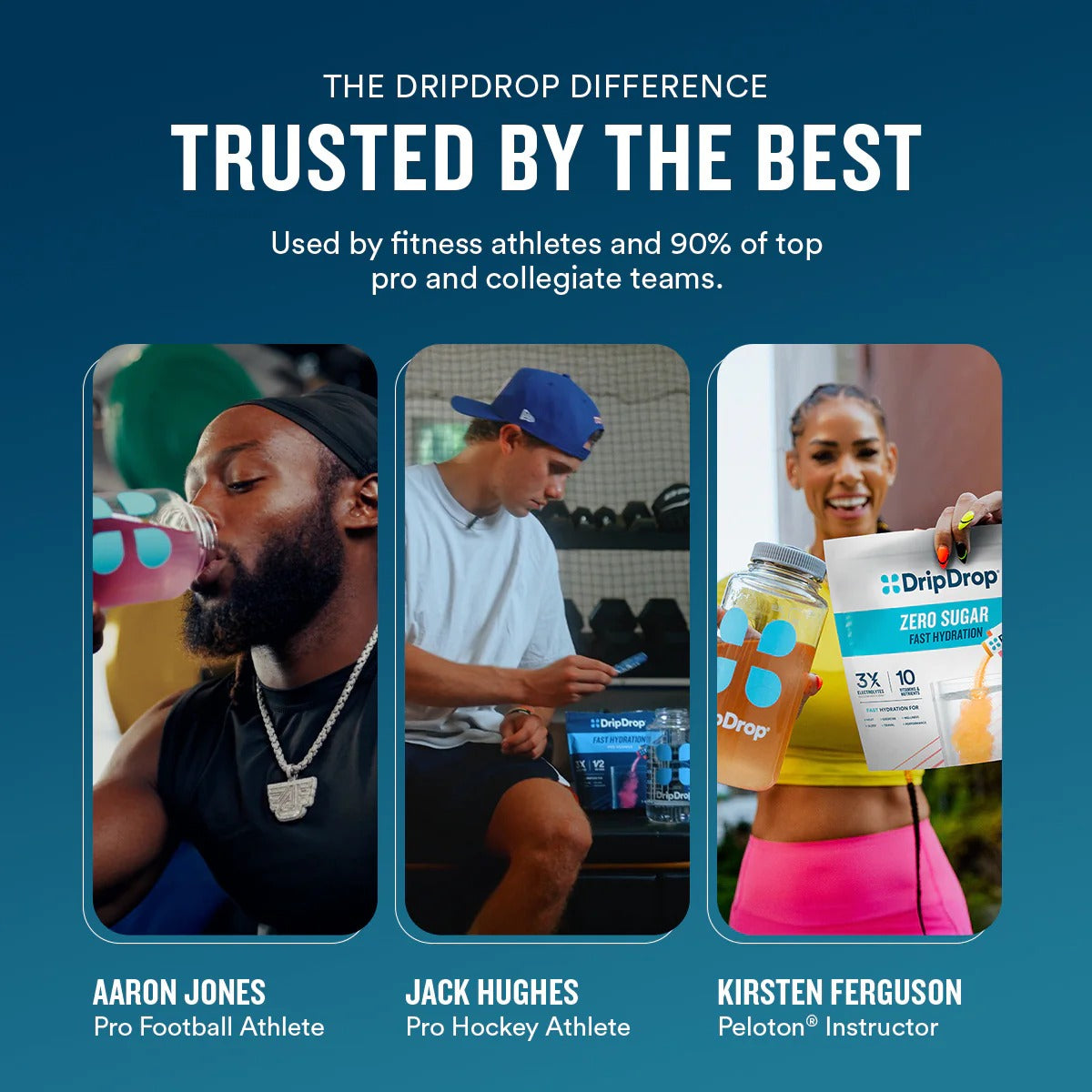 Used by 90% of top professional and collegiate athletes, DripDrop is the go-to rehydration for elite athletes.